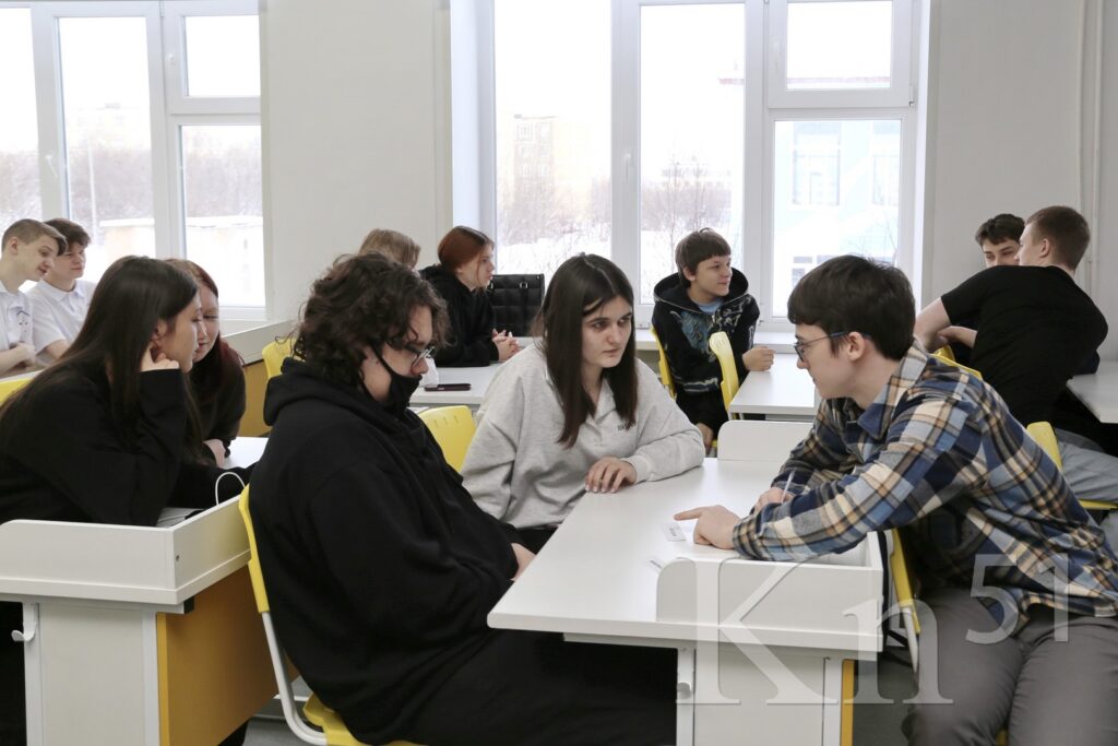 На время профориентационной игры старшеклассники школы №9 Заполярного стали горняками и обогатителями и познакомились с профессиями, которые востребованы в Кольской ГМК.